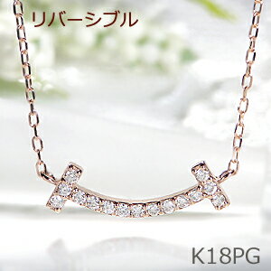 K18PG リバーシブル スマイル ダイヤモンド ネックレス ペンダント【送料無料】スマイルネックレス スマイルペンダント ダイヤネックレス ラインネックレス 18金 K18 Tモチーフネックレス Tライン ゴールド 贈り物 スマイルミニ